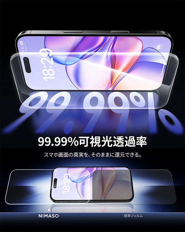 NIMASO iPhone 17/Pro/Pro Max/Air用 強化ガラスフィルム トゥルーカラーフィルム 反射防止 9H硬度 超高透過率 指紋防止