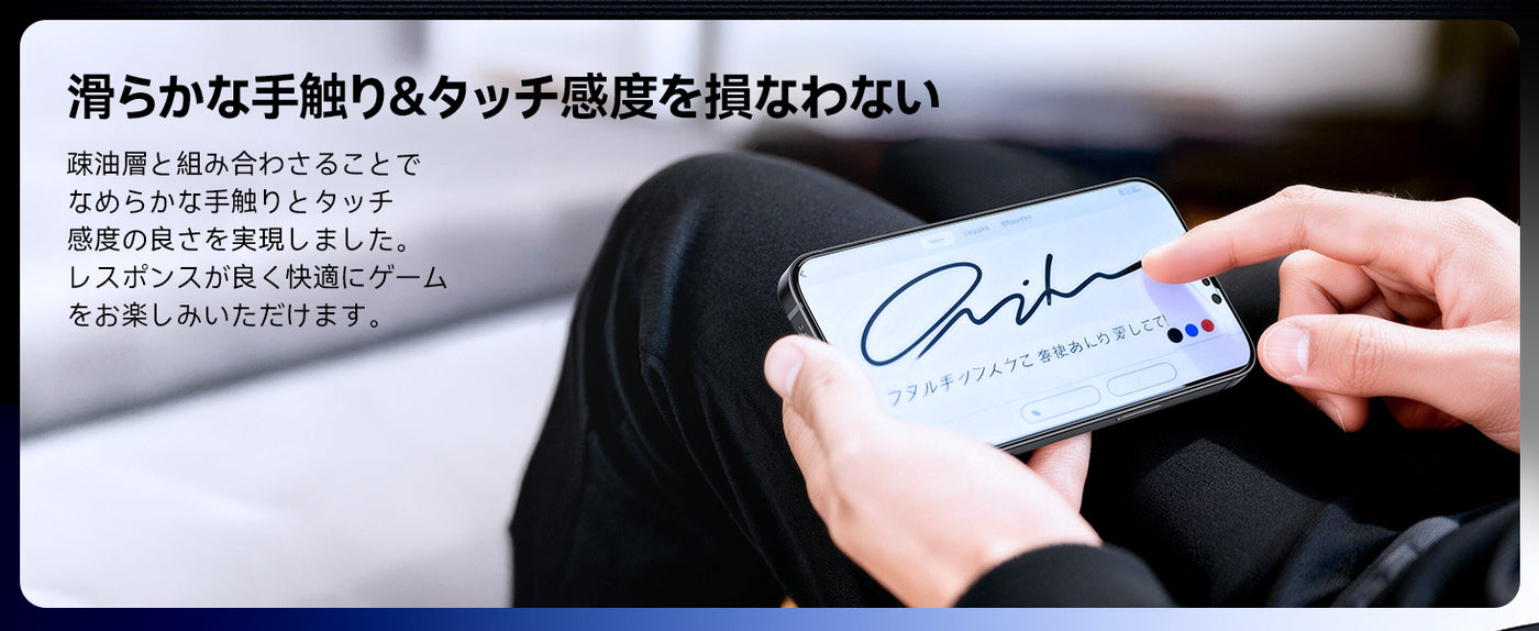 • 【指紋防止・汚れ防止・なめらかな手触り】2.5Dラウンドエッジ加工で端末にぴったりフィット。さらに、表面には高性能の撥水・撥油・防指紋コーティングを施しているため、ベタついた指紋や皮脂、水滴や油汚れを簡単に拭き取れ、常にクリアな画面をキープしながら、快適な操作もサポートできます。