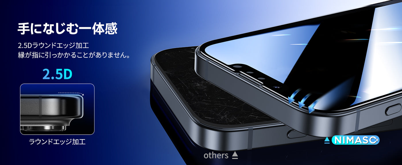 NIMASO 360度 覗き見防止 iPhone 16e/14/13 Pro/13用 ガラスフィルム 上下左右のぞき見防止 自動除塵ガイド枠付き【2枚】