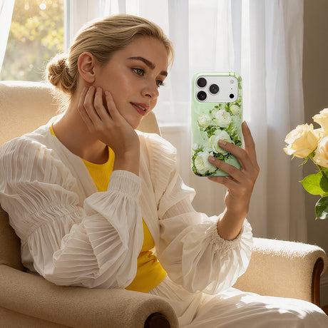 NIMASO iPhone 17/Pro/Pro Max/Air用ケース かわいい MagSafe対応 シリコン 立体感 花柄 おしゃれ 全面保護 耐衝撃 さらさら手触り(薔薇シリーズ)