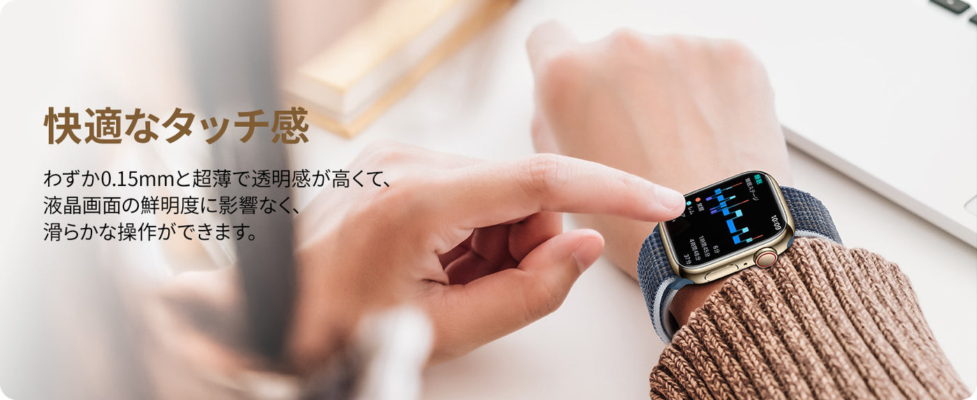 • 【高透過率&高感度タッチ】高透過率を持つ極薄TPU素材製、フィルムの装着感はゼロで、高い透明感Apple Watch画面の精細さを保ちます。高い品質なTPUで優れたタッチ感を実現します。