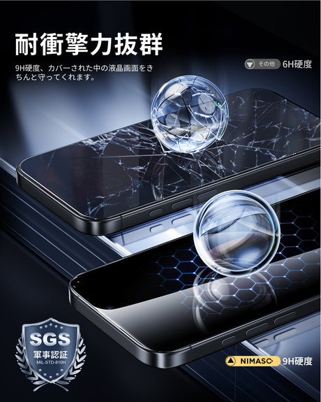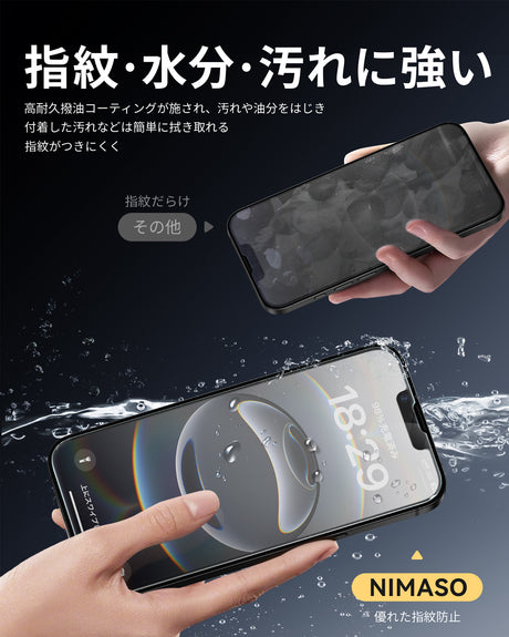 NIMASO iPhone 16e/14/13 Pro/13 2in1 アンチグレア+覗き見防止 強化ガラスフィルム 「バリ楽Box」ガイド枠付き【1枚】