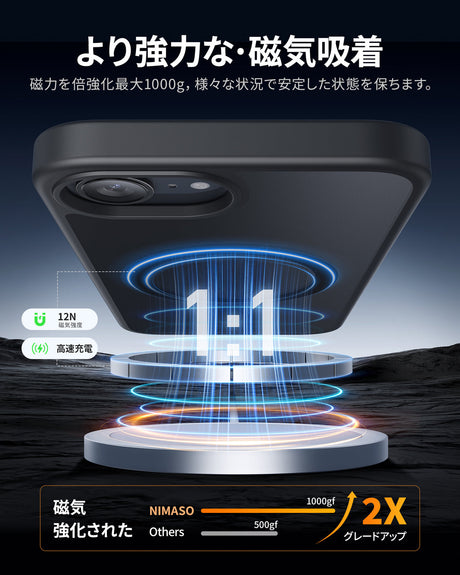 NIMASO iPhone 16/Pro/Pro Max用ケース MagSafe対応 360°回転スタンドケース(氷星シリーズ)