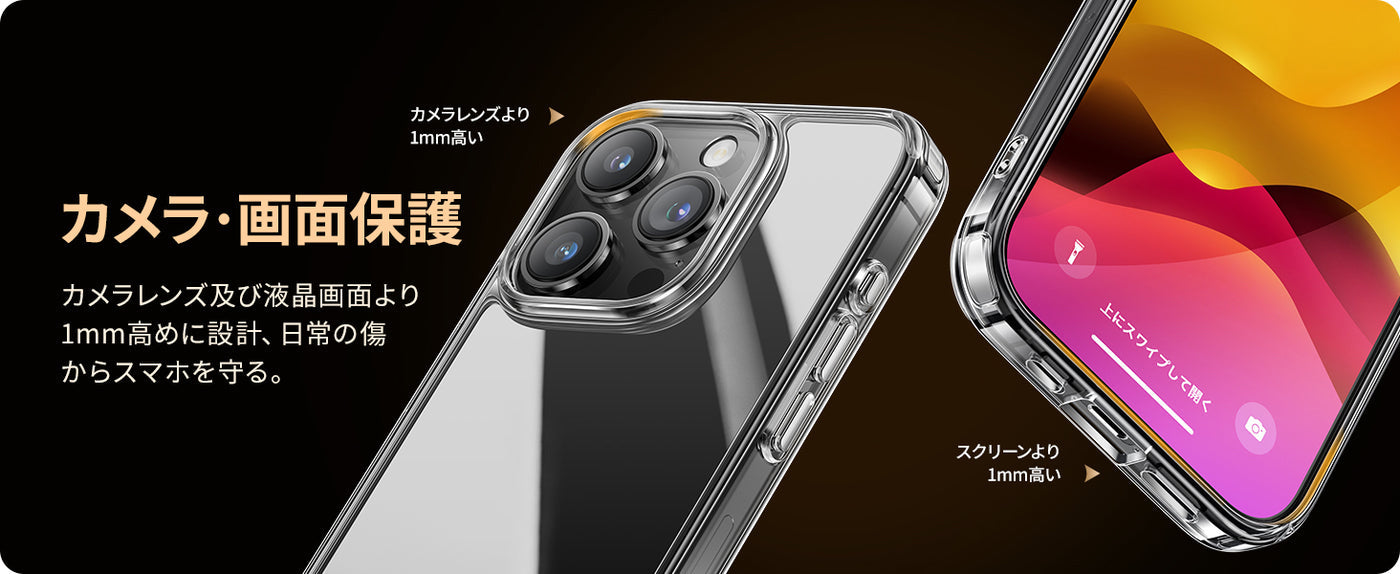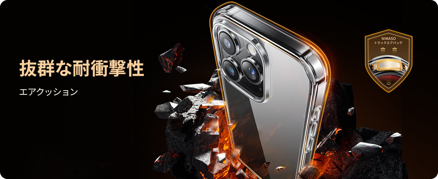 ?クリア、高透明感、米軍規格取得、耐衝撃クーション、 指紋防止コーティング、バンパー、黄ばみ防止、ストラップホール付き