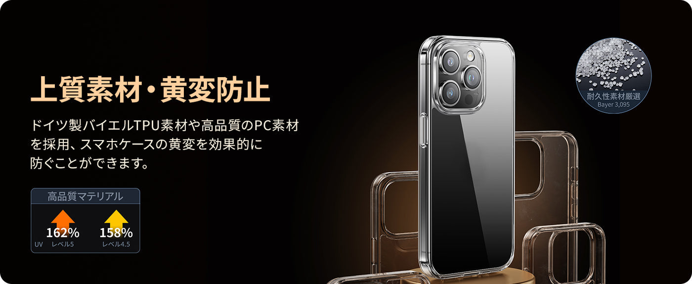 • 【最新改良・黄変防止強化材質】ドイツ製バイエルTPU素材や高品質のPC素材を採用、TPU高分子にUV剤を添加し、黄変防止レベルは4.5級を獲得。スマホを長時間使用しても光沢感、透明感を保つことができます!ワイヤレス充電にも対応していて迅速な充電が可能。あなたの生活をより便利で快適なものにします。