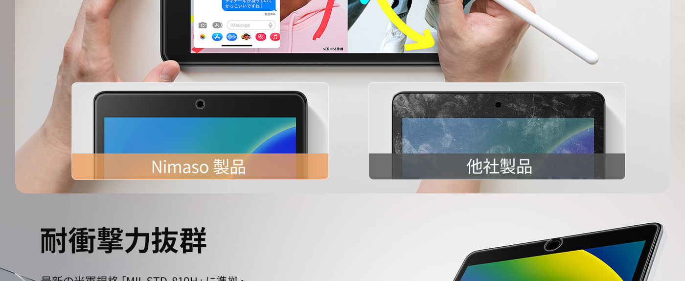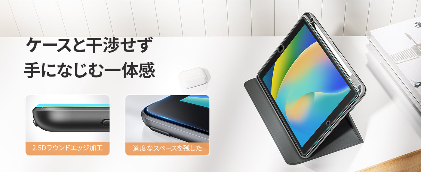 ♥ケースと干渉せず:ipadケースに対応させるため、ガラスフィルムはスクリーンよりやや小さいように設計されています。スクリーンにもっと密着することもできます。ケースとの干渉を気にする必要はありません。♥高品質日本製素材 : 9H硬度を持つガラスにハードコーティングが施されることにより、外部からの衝撃をフィルムが吸収し、画面へのダメージを最低限まで抑えました。