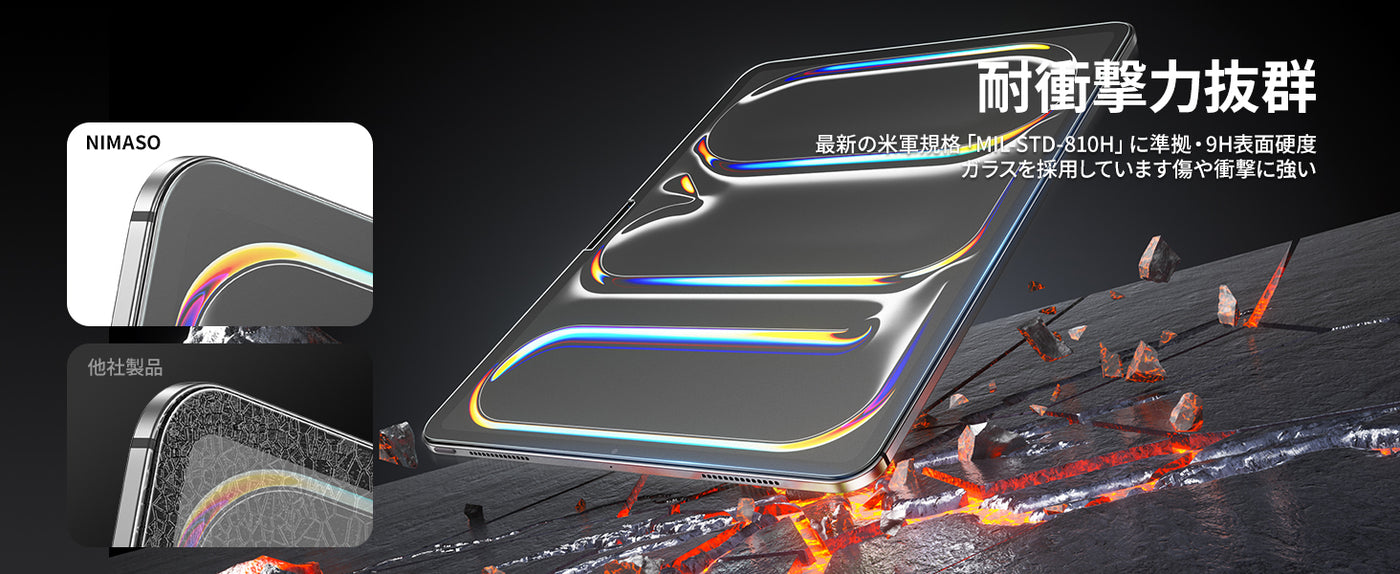 - 【高品質日本製素材】9H硬度を持つガラスにハードコーティングが施されることにより、外部からの衝撃をフィルムが吸収し、画面へのダメージを最低限まで抑えました。