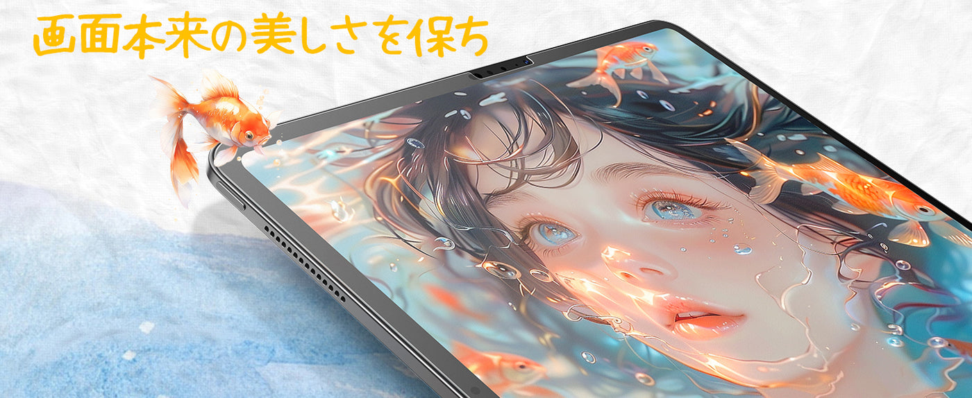 - 【アンチグレア機能・指紋防止】表面には光を乱反射させ、ギラツキを抑えるアンチグレア加工が施されています。目に優しく、長時間のイラスト制作でも、映り込みやチラつきを気にすることなく作業に没頭できます。さらに、指紋防止加工によって、指紋や水滴の付着を防いで落としやすくするフッ素コーティングや、日常使用による擦り傷から画面を守る表面硬度3Hのハードコート加工も施されています。