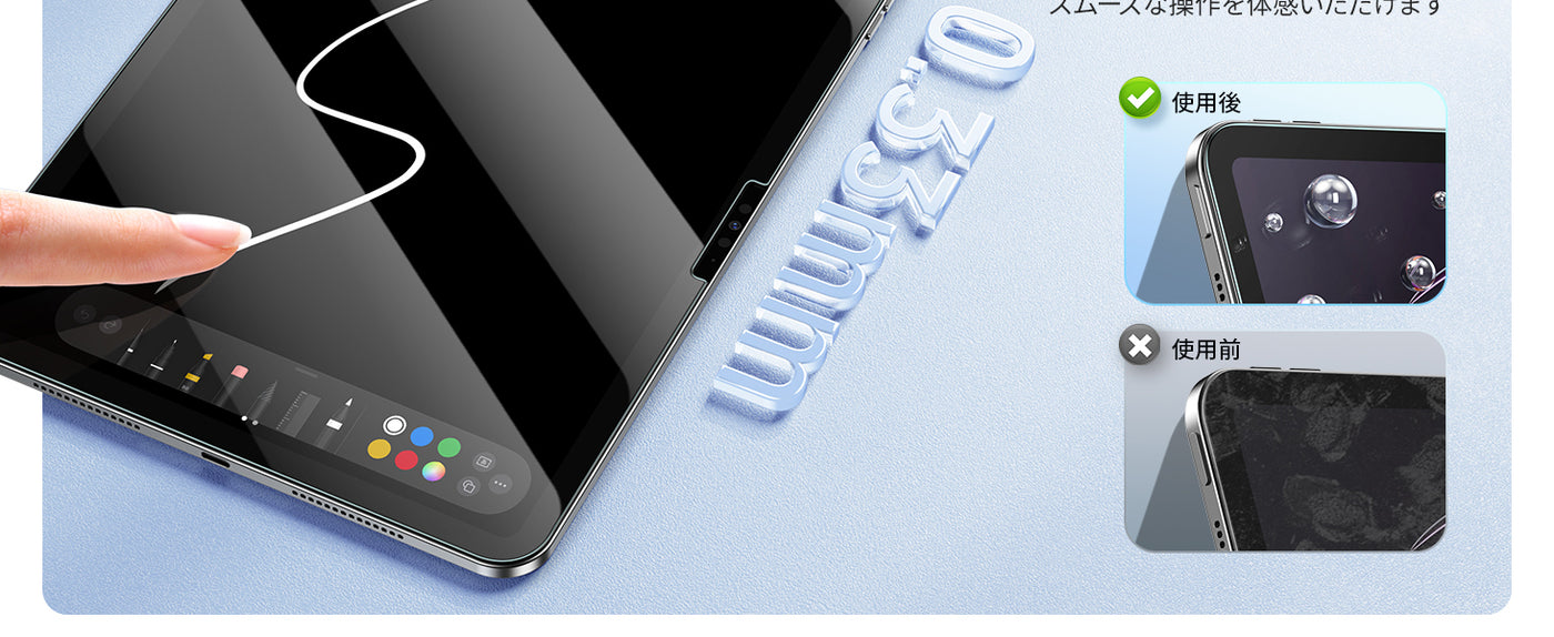 ⭐高透過率:iPad Pro 13にはOLED技術が搭載されており、画面はより鮮やかなのに、エネルギーを節約し、節電の効果があります。当社のフィルムはiPadのOLEDテクノロジーに対応した高透過率により、画面の高解像度を維持し、iPad本来がもつ美しい画面をそのままお楽しみいただけます。画面上の操作も違和感なくスムーズに行えます。