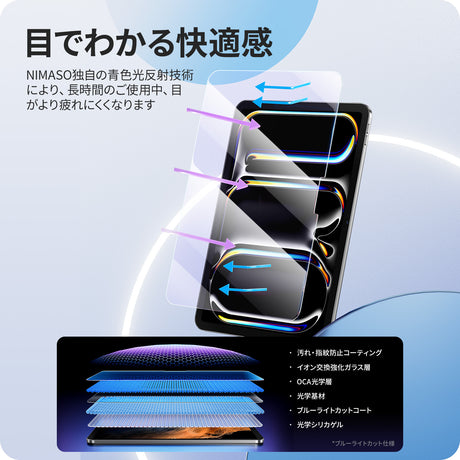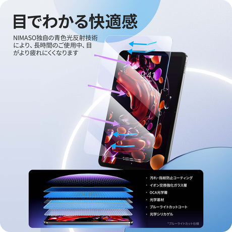 NIMASO ブルーライトカットガラスフィルム iPad Air 11 M3 第7世代 2025用/ipad air 11インチ M2 第6世代 2024用