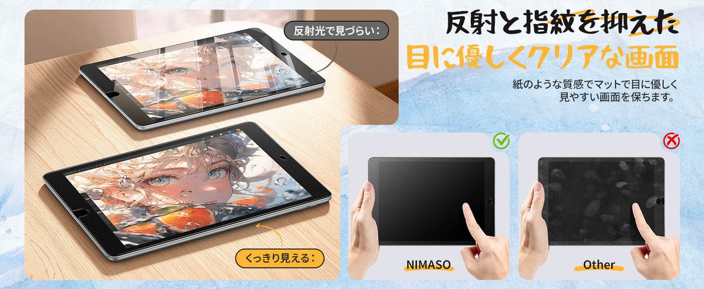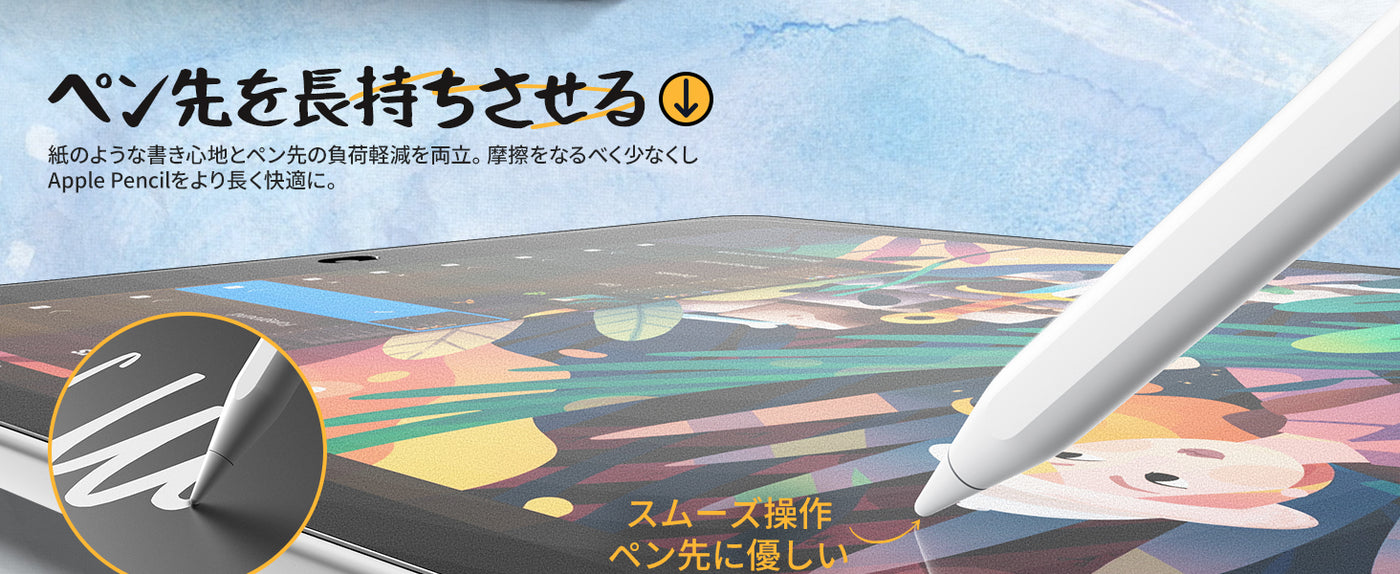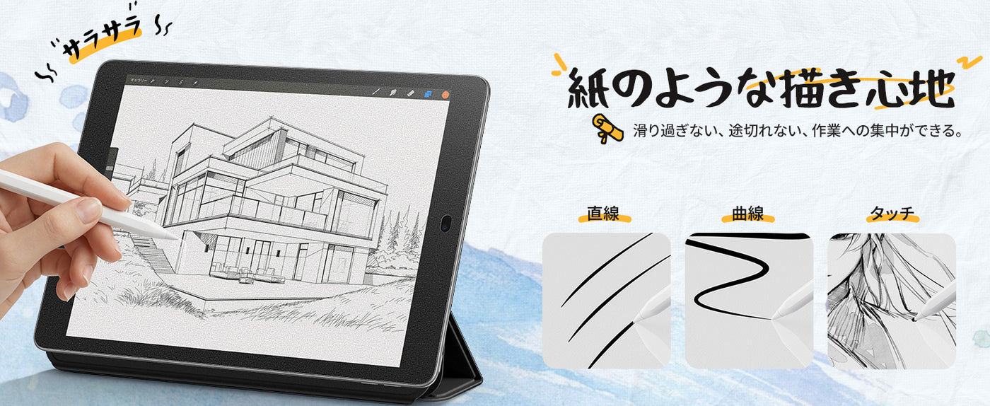 Apple Pencil 高感度タッチ / iPad ペーパーライク フィルム 薄型 / 指紋防止 フィルムとして快適です。