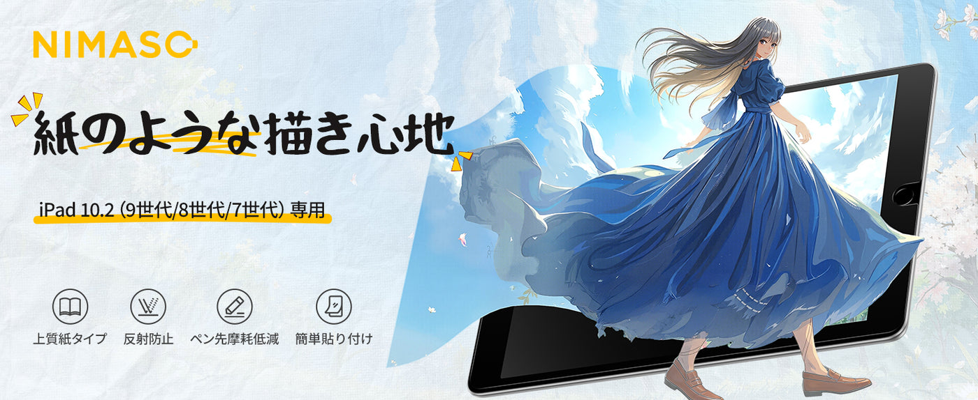 NIMASO ペーパーライクフィルム iPad 10.2用 iPad 9世代/8世代/7世代 アンチグレア 反射低減 指紋防止 紙のような描き心地 位置決めガイド付き