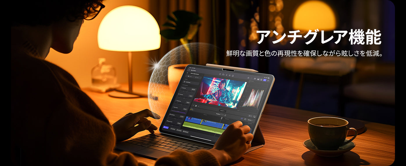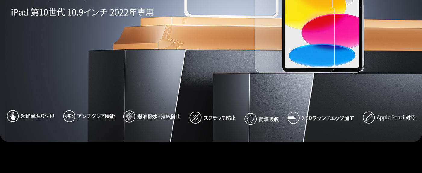 - アンチグレア:表面にアンチグレア加工が施されており、光を乱反射させ、ギラツキを抑え、iPad 11世代の画面の映り込みを抑えます。強い光から目を守ります。一方、アンチグレアの特性上、画質が少々落ちることもあります。*今回のフィルム素材は従来のアンチグレアフィルムよりも画面が見やすく認識しやすくなり、目の負担を軽減し、疲れにくいです。