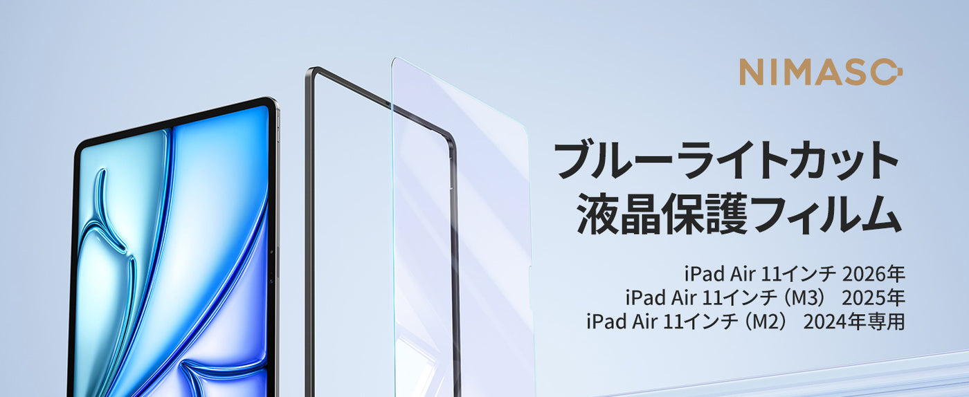NIMASO ブルーライトカットガラスフィルム iPad Air 11 インチ M4 第8世代 2026/iPad Air M3 第7世代 2025/iPad Air M2 第6世代 2024用 ガイド枠付き - iPad Air 11インチ(第6-8世代,2024/25/26) ...は取り寄せ中で入荷次第発送します。