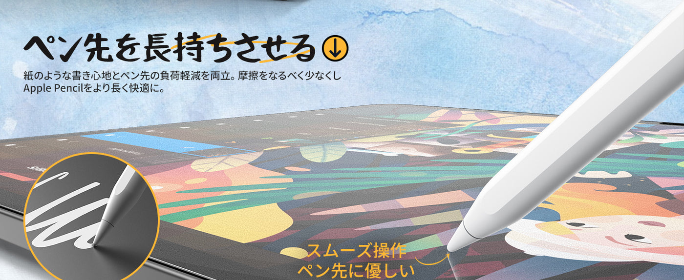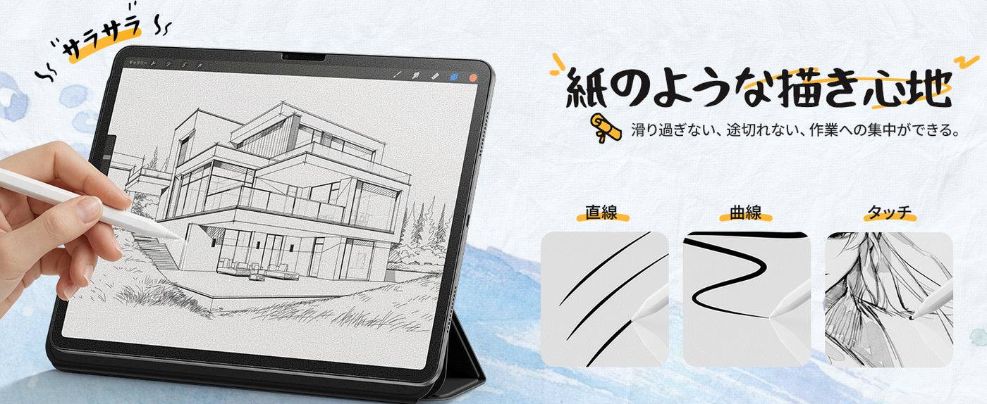 Apple Pencil使用時に「サラサラ」とした自然な書き味を実現します。