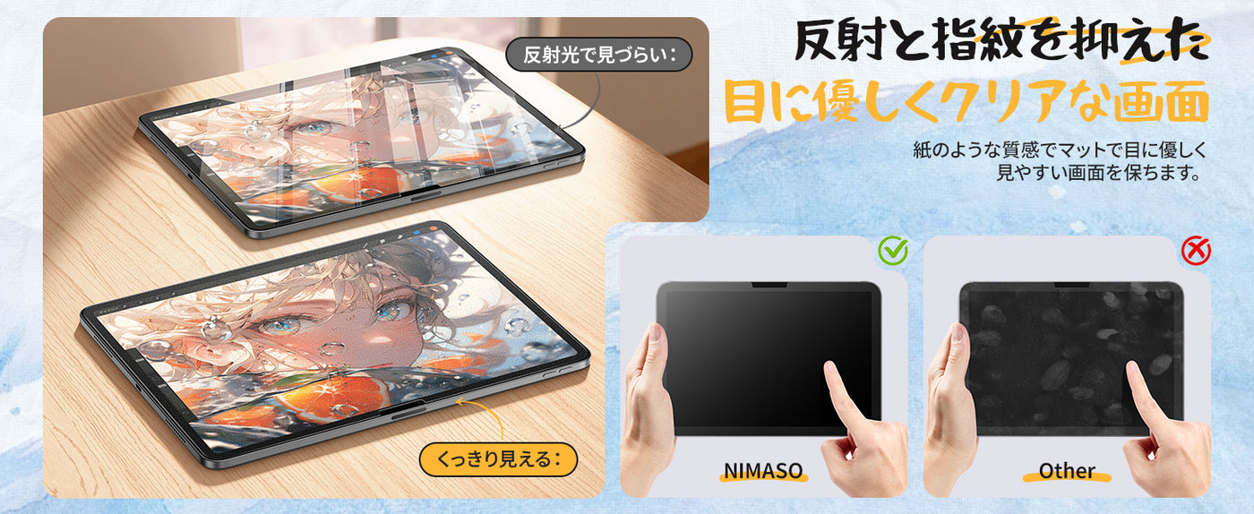 最新ナノ素材と独自マット加工により、紙に近い摩擦感を再現し、