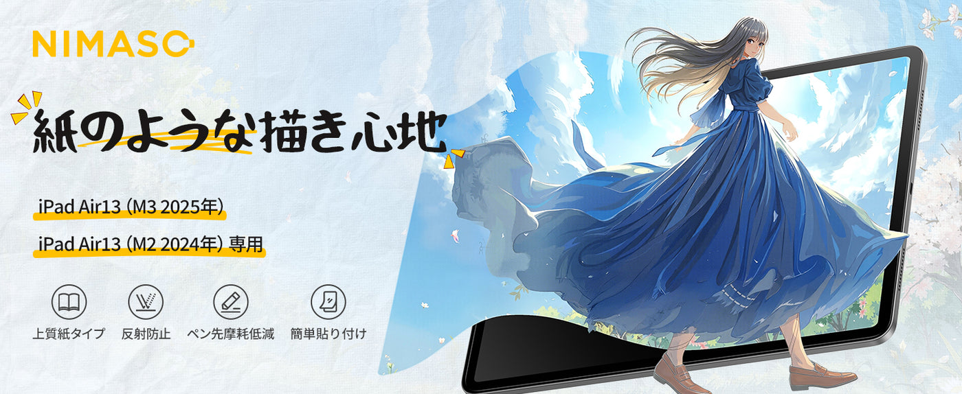NIMASO ペーパーライクフィルム iPad Air 13インチ M3 2025用/M2 2024用 アンチグレア 反射低減 指紋防止 紙のような描き心地 位置決めガイド付き - iPad Air 13インチ(第6-7世代,2024/25) ...は取り寄せ中で入荷次第発送します。