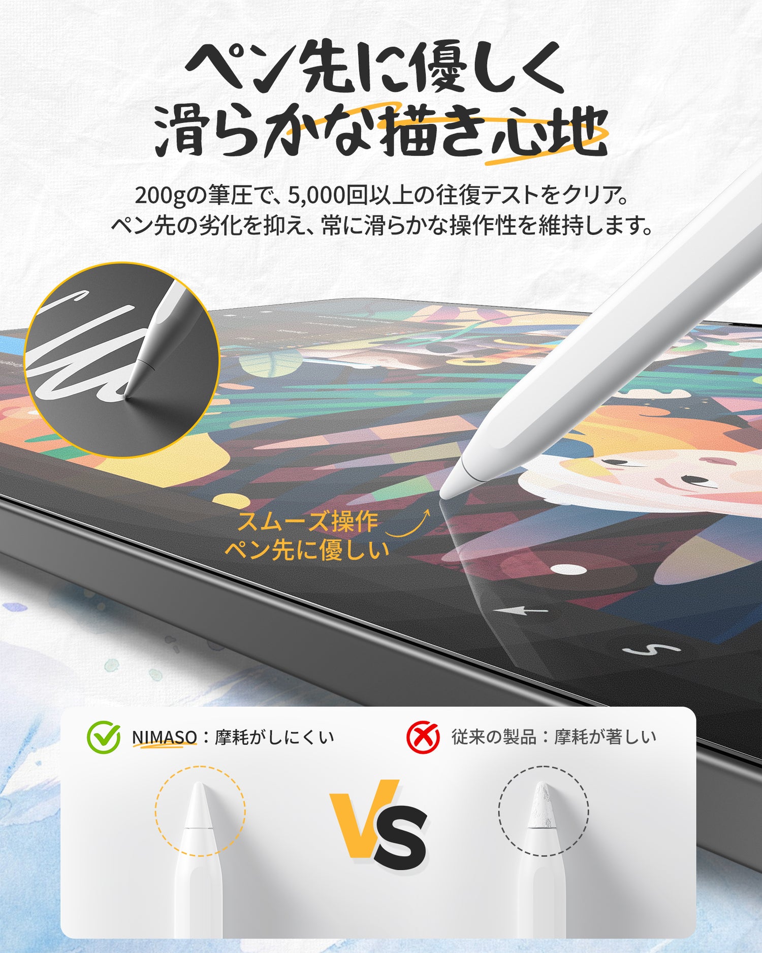 【ペン先消耗を抑える・なめらかな操作性】