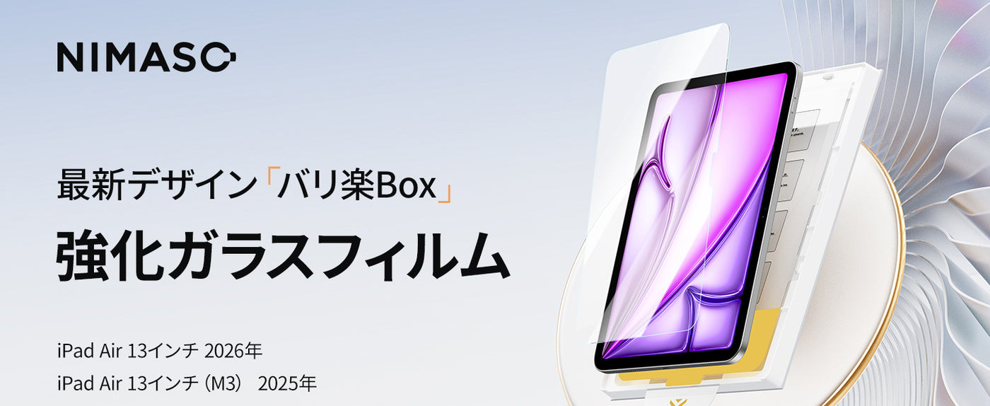 「バリ楽Box」NIMASO ガラスフィルム iPad Air 13インチ M4 第8世代 2026/iPad Air M3 第7世代 2025/iPad Air M2 第6世代 2024用 ガイド枠付 - iPad Air 13インチ(第6-8世代,2024/25/26) ...は取り寄せ中で入荷次第発送します。