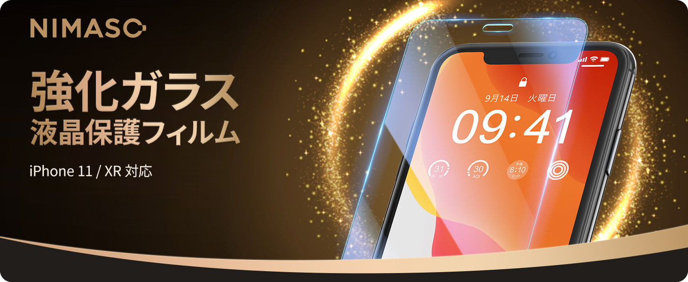 NIMASO ガラスフィルム iPhone 11/11 Pro Max/XR/XS Max用 高光沢 ガイド枠付き 2枚入り