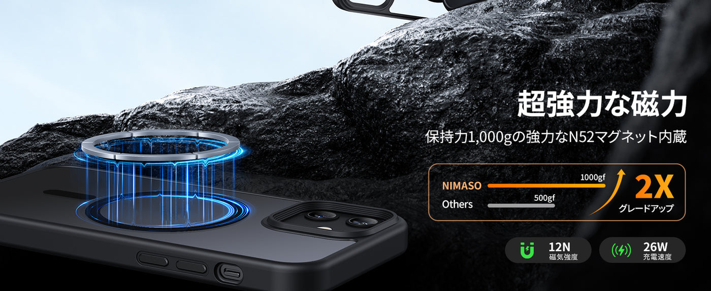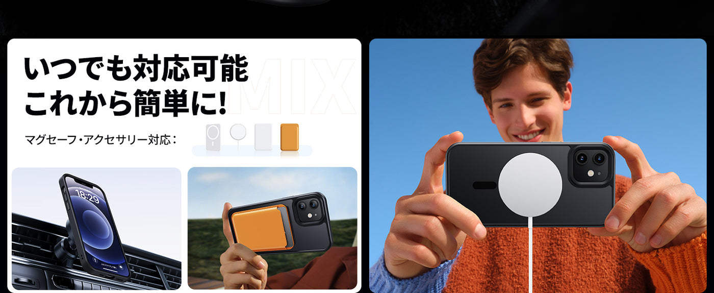 - 【MagSafe対応・強力な磁力吸着】強力なマグネット搭載で差し込みのいらない超簡単充電を実現しました。マグネットによる正確な位置に合わせで、一瞬でピッタリと高速充電を実現!いくら振っても落ちないので、充電しながらゲームをやっても問題なし!また、ワイヤレス充電やモバイルバッテリー・車載ホルダー・スタンド・リングなど全てのMagSafeアクセサリーにもばっちり対応しています。