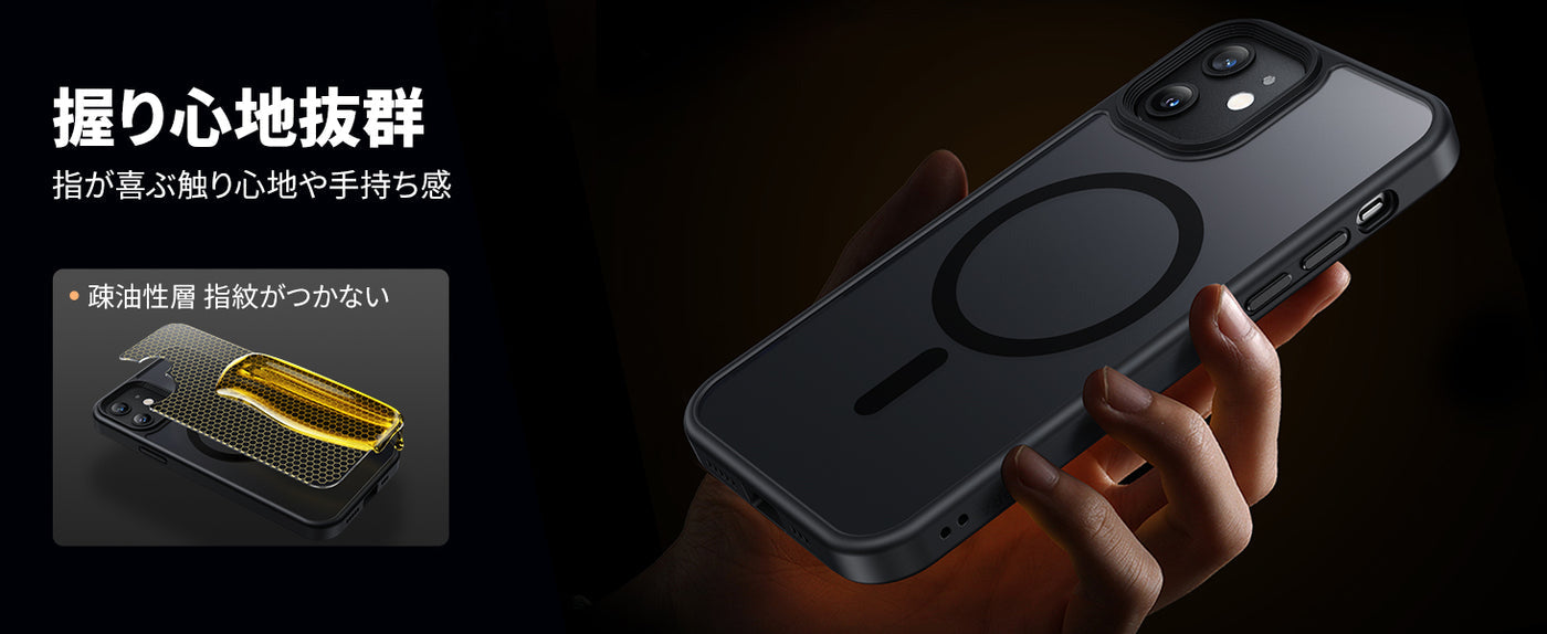 - 【滑り防止・握り心地抜群】側面はTPU素材を採用。ベタつかず適度な柔らかさでクッション性があり、心地よく手にフィットして滑りにくいので落としてしまう心配が減ります。また、左下にはストラップホールがあり、お好きなストラップを付けられます。(本製品は、手に持った時の手触りの良さが特徴です。サラサラとした手触りでございますので、ご了承ください