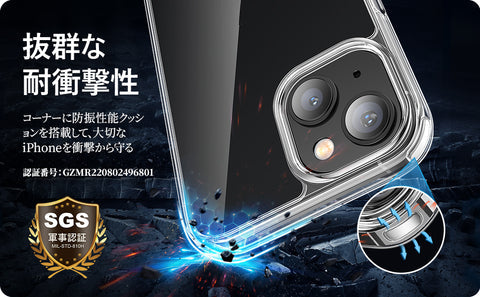- 【米軍MIL規格認証済み・耐衝撃性抜群】SGSによる世界で有名な米軍MIL規格「MIL-STD-810H」認証を取得済みです。(認証番号:GZMR220802496801)。側面に高品質のTPUと丈夫なポリカーボネート背面との組み合わせ、更にケース四隅には、高耐震クッションを搭載しており、耐衝撃性能は従来品よりより一層アップしています。iPhoneを落下などの衝撃からしっかりと見守れます。
