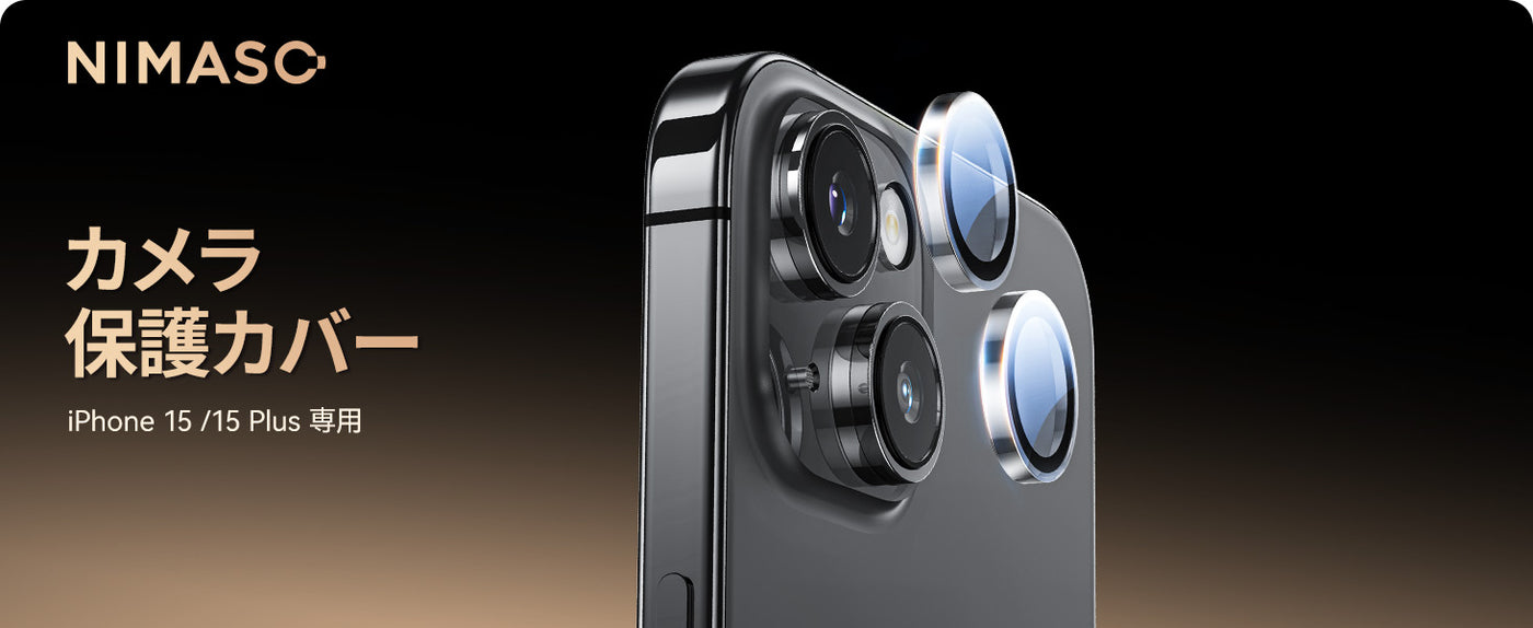 NIMASO iPhone 15/Plus/Pro/Pro Max用 レンズカバー カメラ 保護 キズ防止 黒縁取り