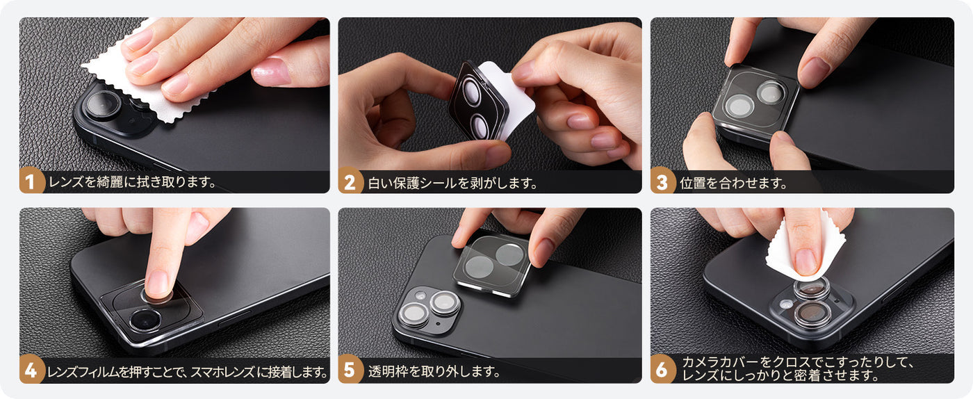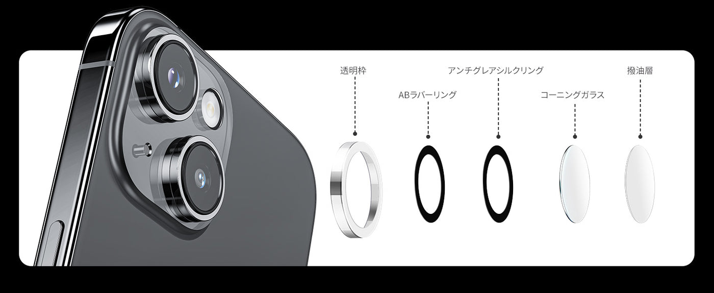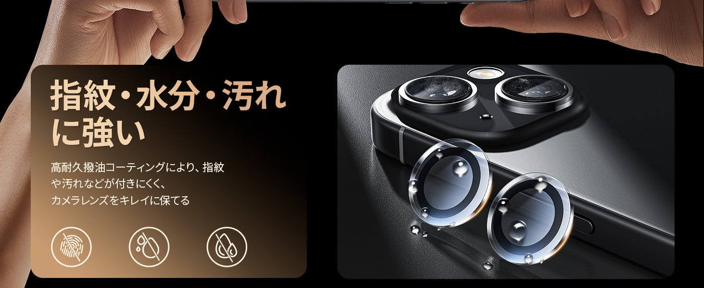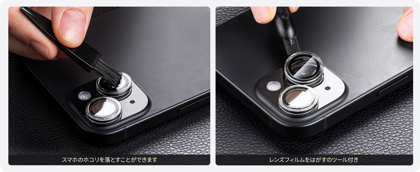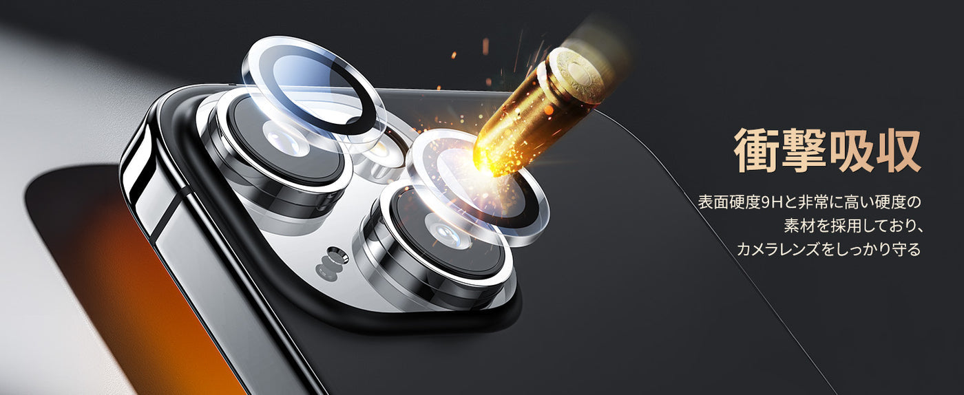 • 【カメラレンズをしっかり守る】強化ガラスを使用しており、9Hの高硬度なので、ナイフや鍵などの尖ったものでも簡単には傷がつきません。カメラレンズ全面を守り、バッグやポケットの中で付いてしまう引っかき傷に対して高い耐性を持ちます。また、飛散防止設計により、万が一割れてしまっても、破片が飛散せず安全性が高い保護フィルムです。