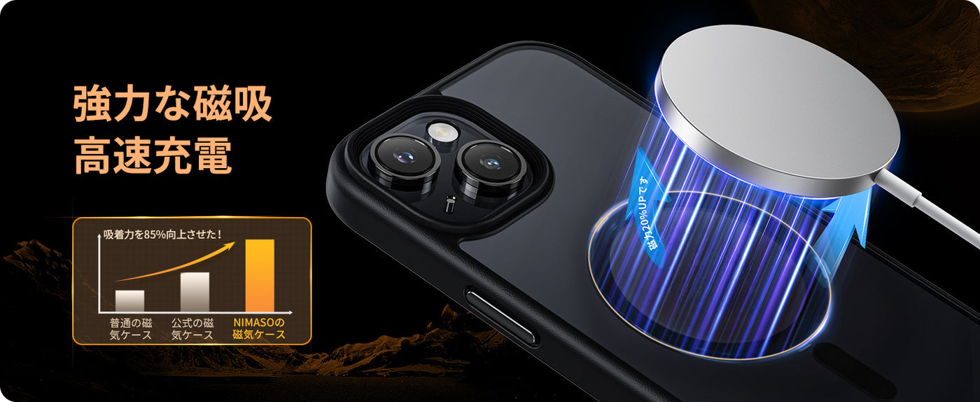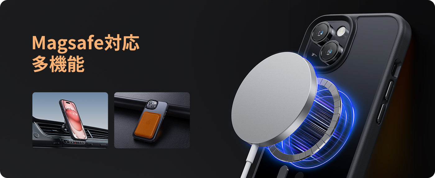 - 【MagSafe対応・強力な磁力吸着】スマホケース内部に38個の強力なN52マグネットを搭載しており、一瞬でピッタリと高速充電を実現!いくら振っても落ちないので、充電しながらゲームをやっても問題なし!また、ワイヤレス充電やモバイルバッテリー・車載ホルダー・スタンド・リングなど全てのMagSafe用アクセサリーにもばっちり対応しています。