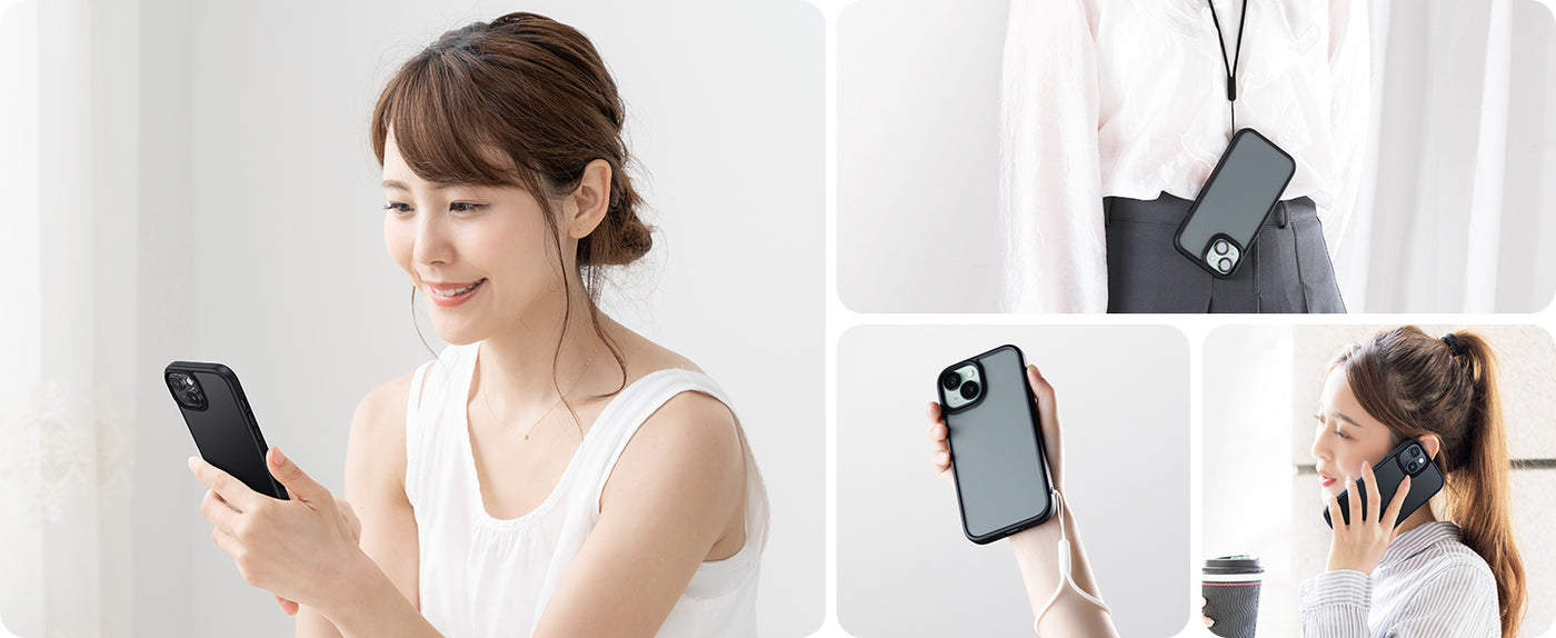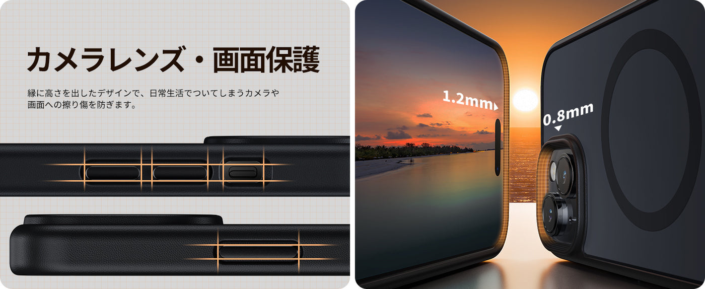 マグセーフ対応、米軍規格取得、耐衝撃クーション、 指紋防止コーティング、バンパー、黄ばみ防止、ストラップホール付き