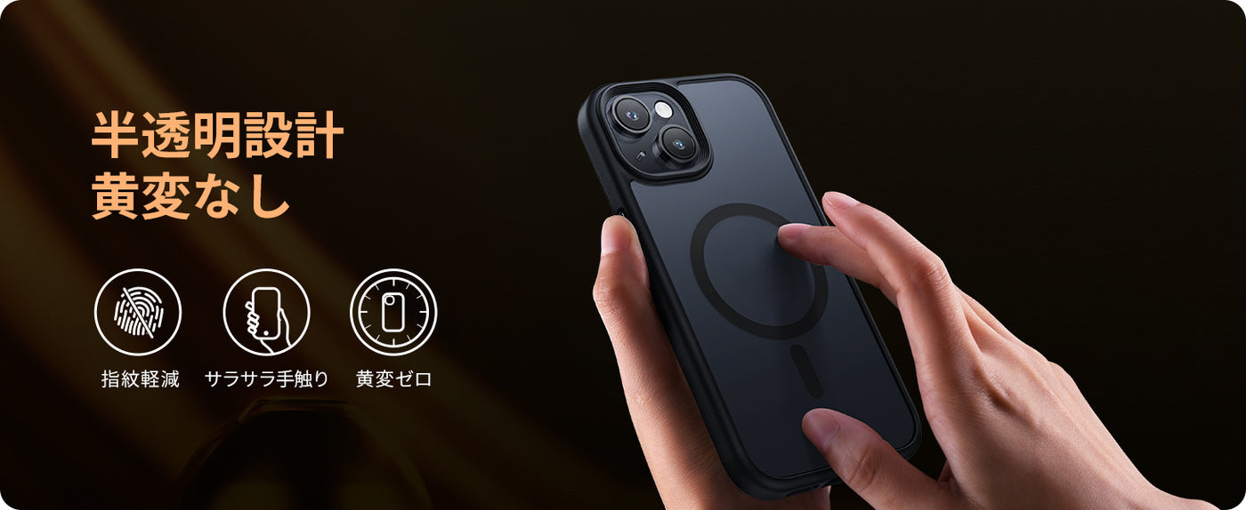 - 【半透明・マットな仕上げ】背面のポリカーボネートは、耐久性や耐摩耗性に優れ、マットな質感でサラサラしており触り心地抜群です。表面には指紋防止ナノオコーティングを施しており、指紋がつく心配はありません。特に、背面は半透明で、高級感と神秘感が溢れ、スマホのかっこいいリンゴロゴが見えます。