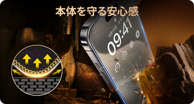 3Dラウンドエッジ加工が施されており、縁が指に引っかかることがなく、側面からの衝撃にも強くなります。