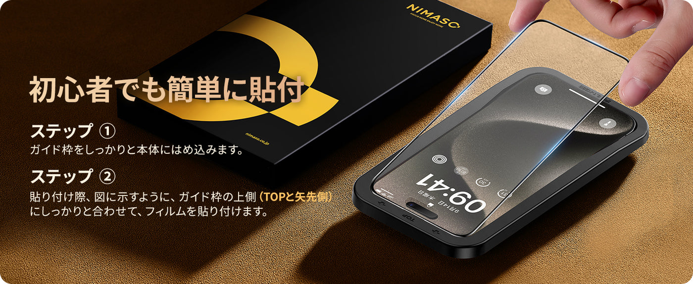 • 【たったの3ステップ・初心者でも綺麗に貼れる】ガイド枠をはめる→上側に合わせて、ガラスフィルムを置く→軽く押すだけで自然に吸着。初めての方でも簡単に貼り付けられるよう、専用の貼り付けガイド枠を同梱しています。iPhone15と保護フイルムがズレることなく、だれでも簡単にガラスフィルムを貼ることができます。