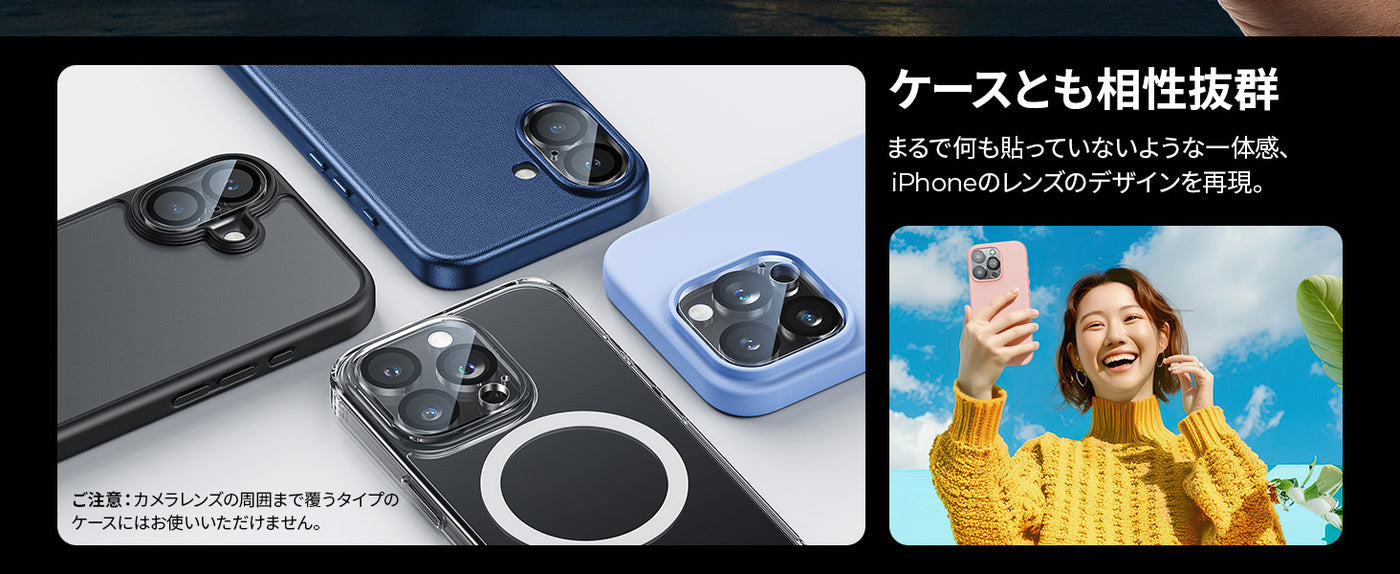 - 【対応機種】iPhone 16/16 Plus/16 Pro/16 Pro Max専用。ご注意:カメラレンズの周囲まで覆うタイプのケースにはお使いいただけません。