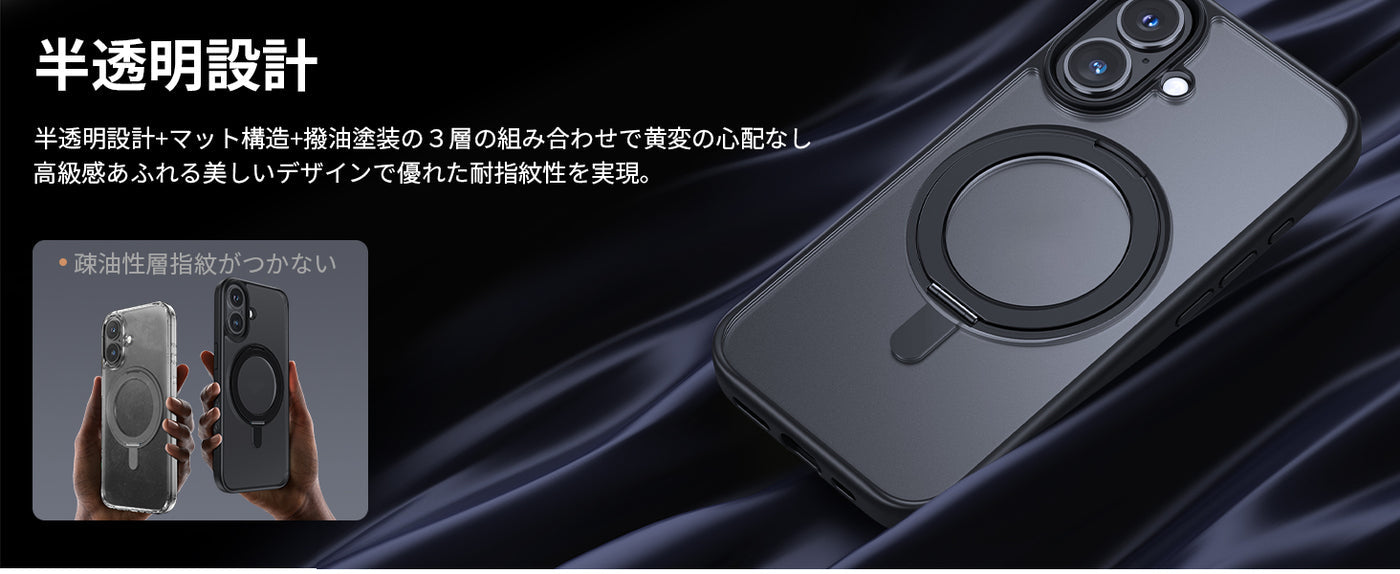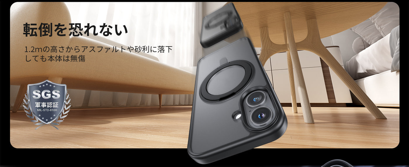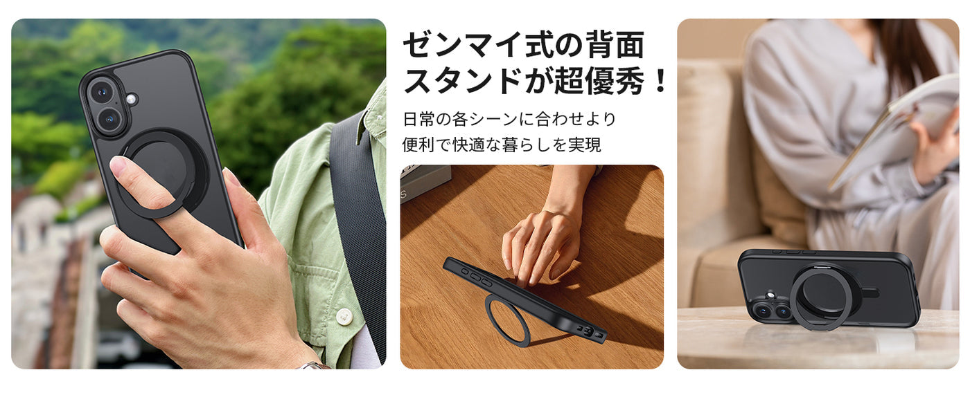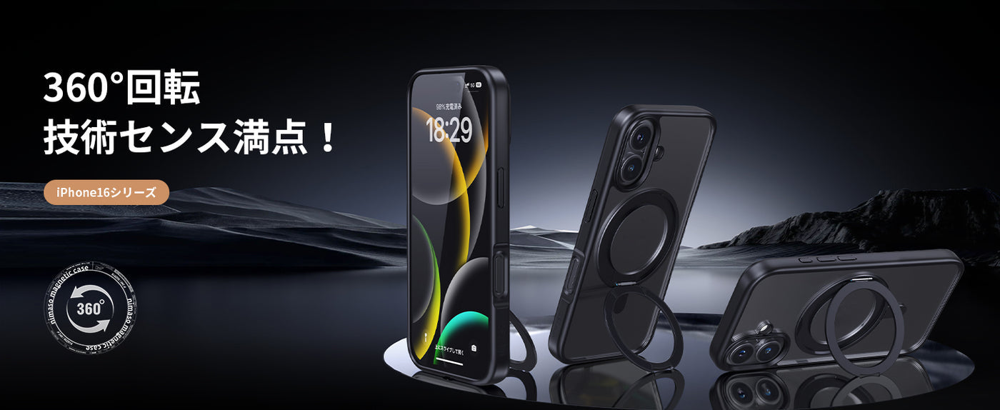 360°回転スタンド|MagSafe対応|ワイヤレス充電対応|指紋防止|縦横両対応|耐衝撃|黄変防止