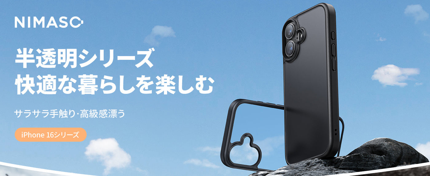 NIMASO サラサラ手触り・高級感漂う 半透明ケース iphone16シリーズ専用