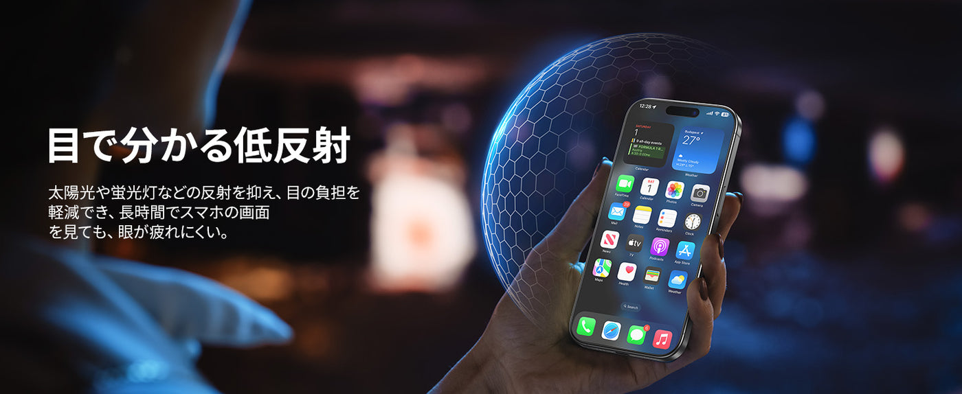 - 【反射低減・アンチグレア機能】NIMASO独自の反射防止コーティングの加工で、いPhone 16 promaxスクリーンへの太陽光や蛍光灯などの反射を抑え、長時間スマホの画面を見ていても眼が疲れにくいです。視認性を向上させて画面を見えやすくすることで、目の負担を軽減でき、効果的に目を保護します。