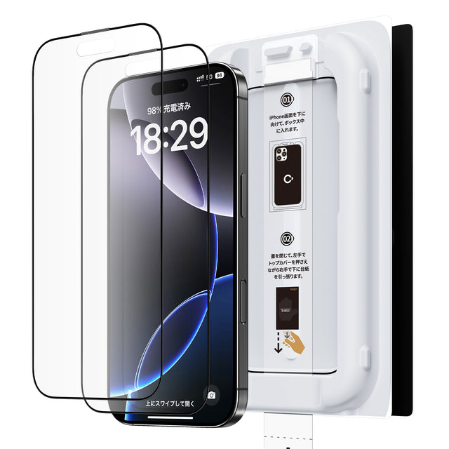 - 【バリ楽Box・誰でも簡単に貼れる】NIMASO最新のフィルム貼り付けデザインで、バリ楽Boxさえあれば、引っ張るだけで貼り付けが完了します。バリ楽Boxには正確な位置決め装置が搭載されており、iphone 16promaxの画面にぴったり合うようにフィルムが配置されています。貼り付け時に自動的に除塵が可能になり、フィルムを貼るのが苦手な方でも簡単にフィルムが貼ることができ、まさに、【誰でも簡単に貼れる】を実現しました。