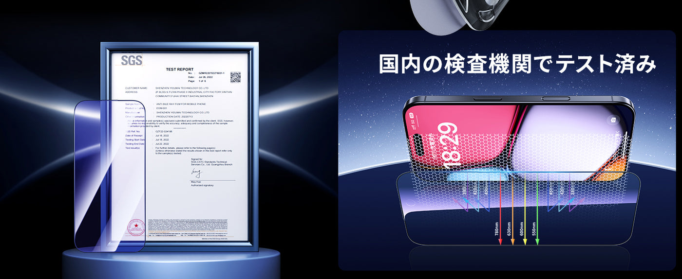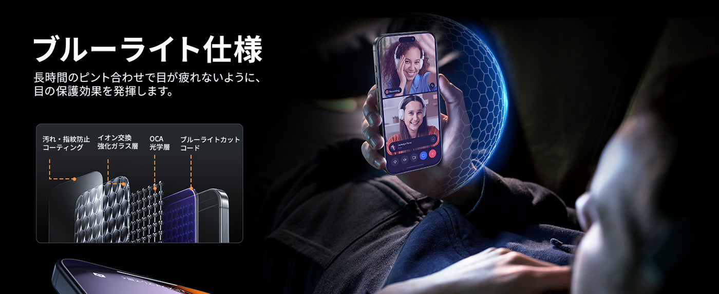 - 【ブルーライトカット・目の疲れ軽減】ブルーライト反射技術によりブルーライトを大幅にカットでき、目の疲労を緩和し、視力を保護します。長時間スマートフォンの画面を見たり、ゲームをしたりする方におススメです。(ご注意:ブルーライトカット加工で、使用角度や環境によって、淡い黄色や薄い紫色に見える場合があります。予めご了承下さい。)