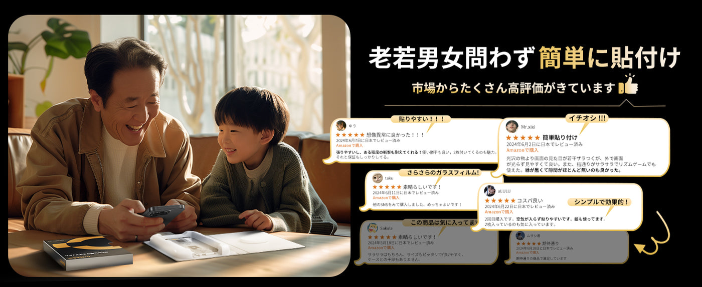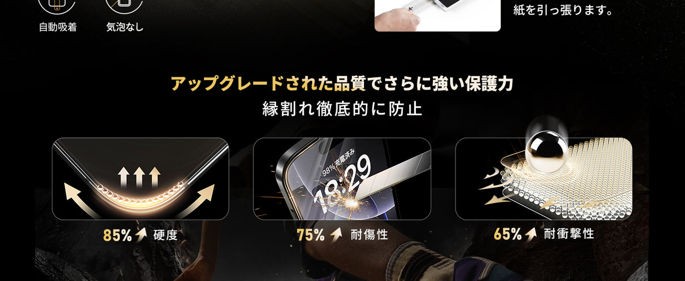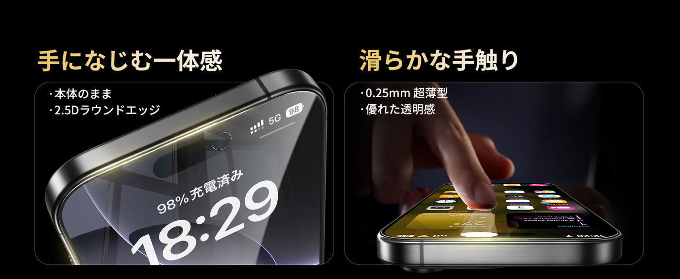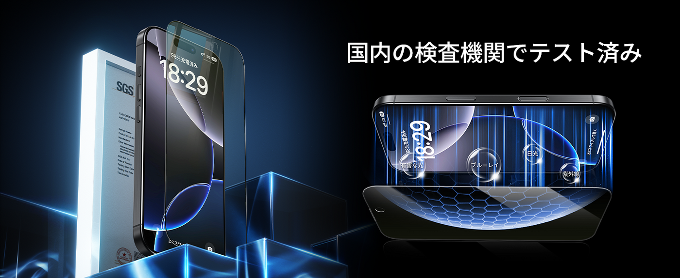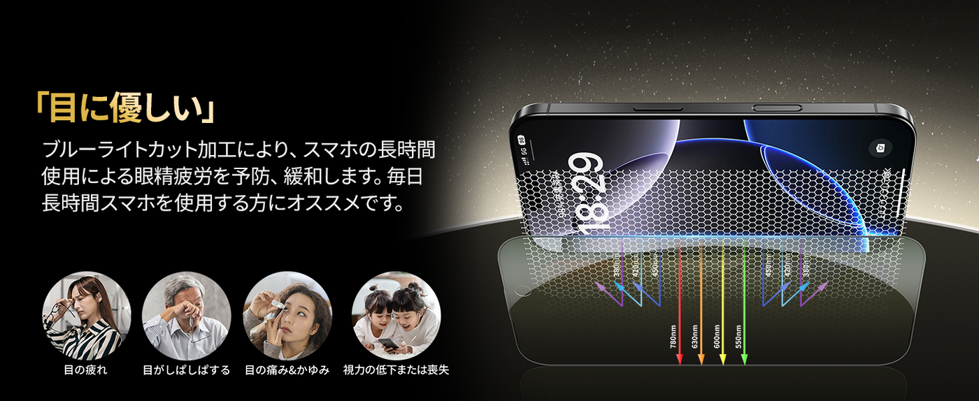 バリ楽Box付き|ブルーライトカット|全面保護|指紋防止|撥水撥油|目の疲れ軽減|耐衝撃|自動吸着|自動除塵|貼付け簡単