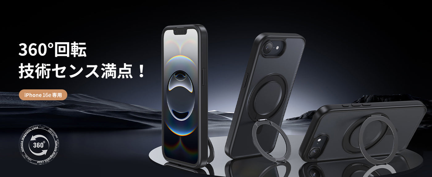 - 【360°回転スタンドケース】市販の固定式スタンドケースとは異なり、 iPhone 16e 対応スタンドケースは360度回転に対応。オンライン会議や友人とビデオ通話をするときは縦置きにして、動画をじっくりと視聴する時は横置きにと、使用目的によって自由に見たい位置に回転することができます。 円形の回転スタンドを回転させると「カチカチ」と快い音が鳴り、ストレス解消グッズに早変わり。