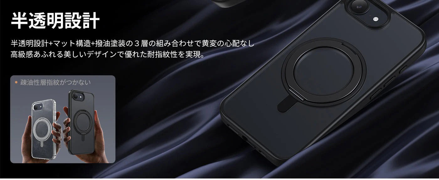 NIMASO iPhone 16eケース 360°スタンド付き MagSafeアクセサリー対応(黒羽シリーズ)