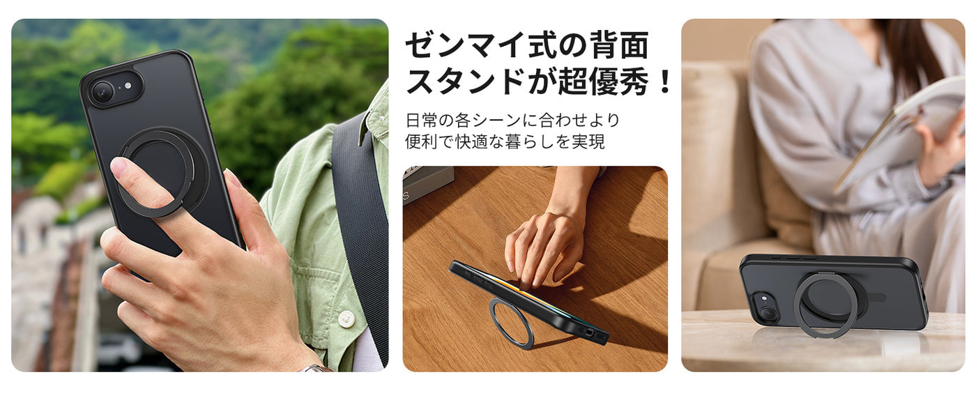 NIMASO iPhone 16eケース 360°スタンド付き MagSafeアクセサリー対応(黒羽シリーズ) - iPhone 16e ...は取り寄せ中で入荷次第発送します。