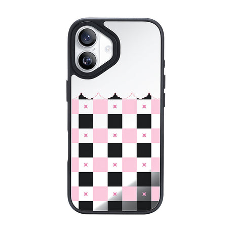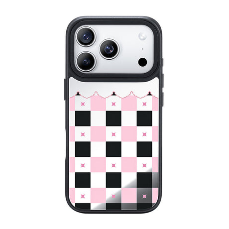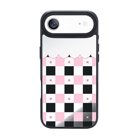 NIMASO iPhone 17/Pro/Pro Max用 ケース MagSafe対応 可愛い ミラー おしゃれ 耐衝撃 ワイヤレス充電対応(ファンシーシリーズ)チェッカー柄 ピンク