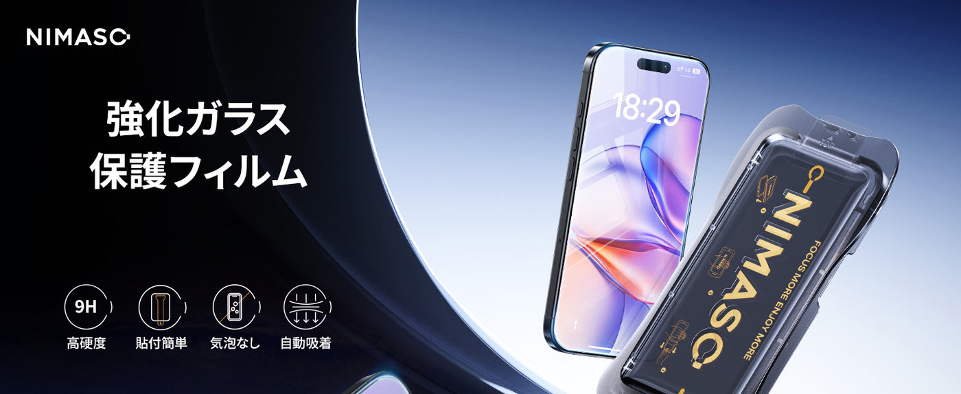 - 【2ステップ貼付・自動除塵】NIMASO最新の自動除塵ガイド枠が登場!被せる、引っ張る、たった2ステップで驚くほど簡単な貼り付け作業ができます!さらに画期的なのが、内蔵された静電式自動除塵構造。ホコリやゴミを自動的に吸着除去するので、貼り付け時の失敗が大幅に軽減します。初めての方でもストレスなく、キレイに貼れるのが特長です。もう気泡やズレに悩まされることはありません!
