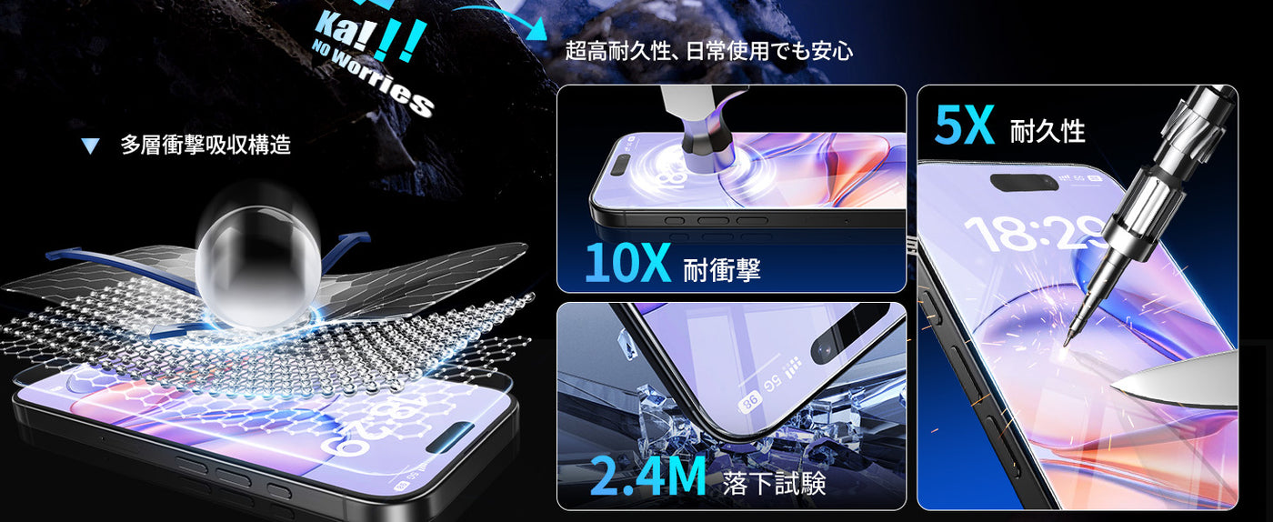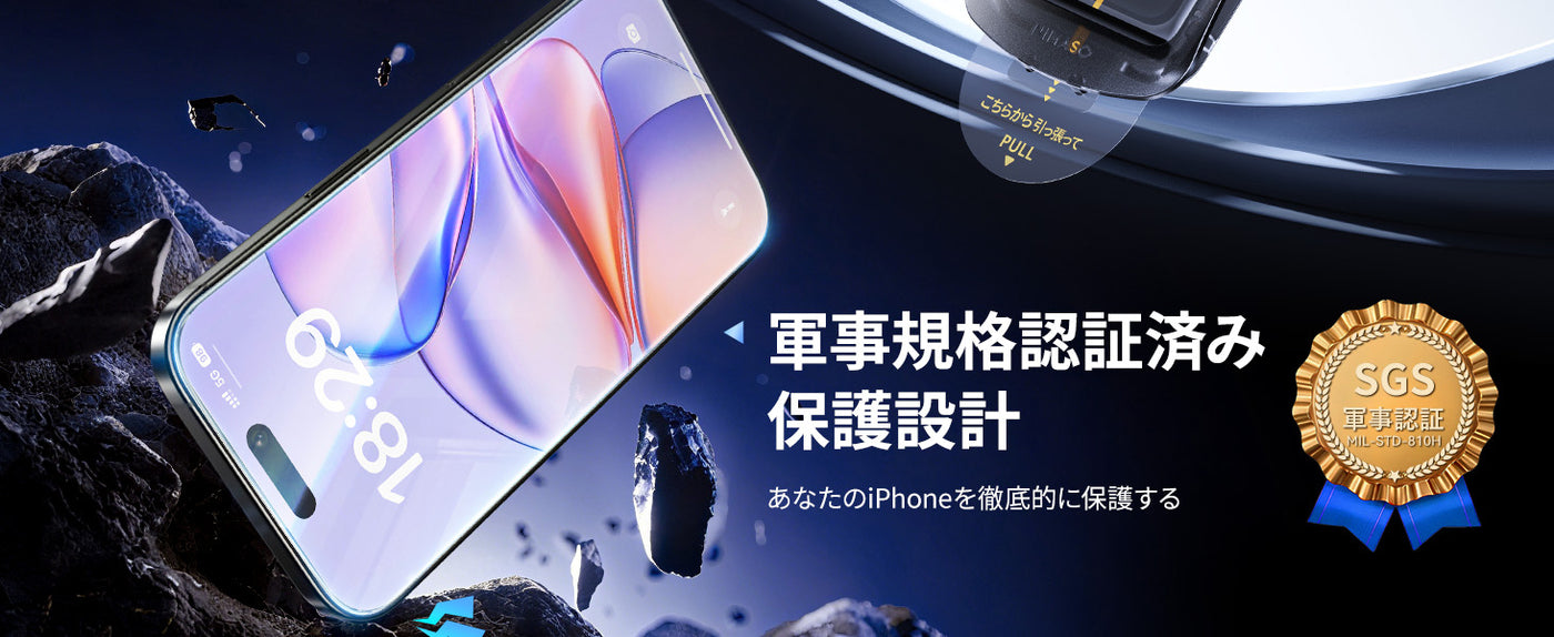 - 【軍用規格レベルの強度・飛散防止】米軍規格MIL-STD-810H認証(SZXEC23002005001)を取得した9H硬度ガラスを採用、鞄やポケットのなかで、鍵などの鋭いものにぶつかっても傷が付きにくく、アイフォン17をしっかり保護します。飛散防止加工により、万一割れてもガラス破片が飛び散ることなく安心です。