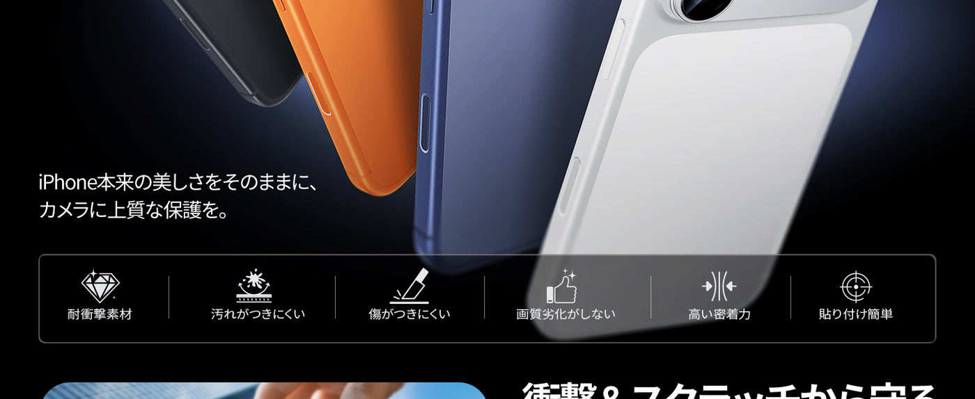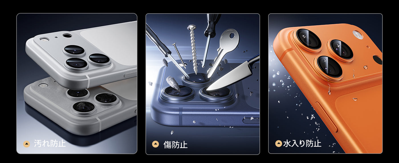 - 【貼り付け簡単・撥水撥油・指紋防止】粘着力の強い3Mテープを採用しており、アイホン17/アイホン16/16プラスレンズに合わせてはめこむように置くだけで、気泡も浮きもなくきれいに貼り付けることができます。初めての方でも簡単に綺麗に貼り付け可能です。カメラ保護フィルムには高耐久撥油コーティングが施されているので、汚れや油分をはじき、指紋がつきにくく、付着した汚れなどは簡単に拭き取れます。