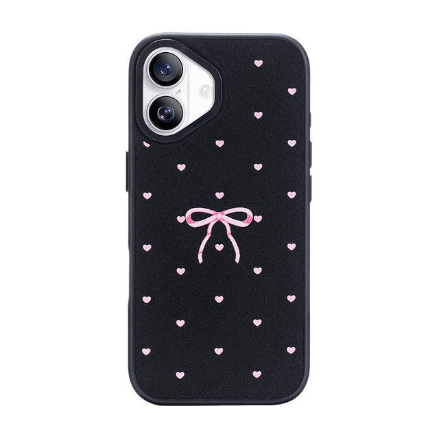 NIMASO iPhone 17/Pro/Pro Max/Air用 ケース MagSafe対応 かわいい おしゃれ 耐衝撃 ワイヤレス充電対応(ファンシーシリーズ)リボン柄 ブラック