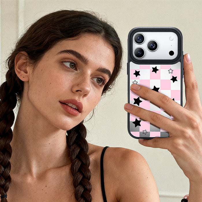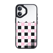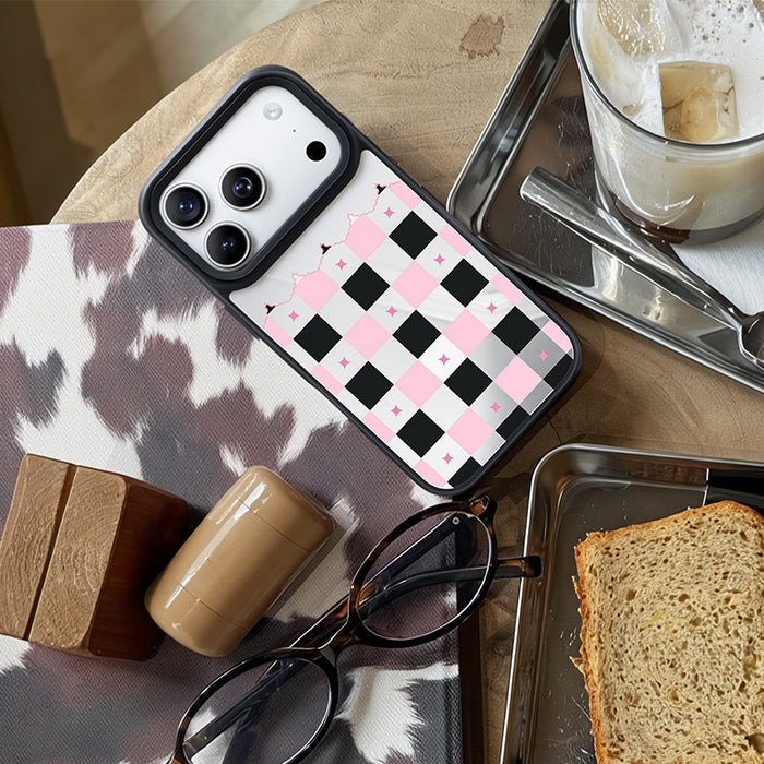 NIMASO iPhone 17/Pro/Pro Max/Air用 ケース MagSafe対応 ミラー 可愛い おしゃれ 耐衝撃 ワイヤレス充電対応(ファンシーシリーズ)チェッカー柄 黒とピンク